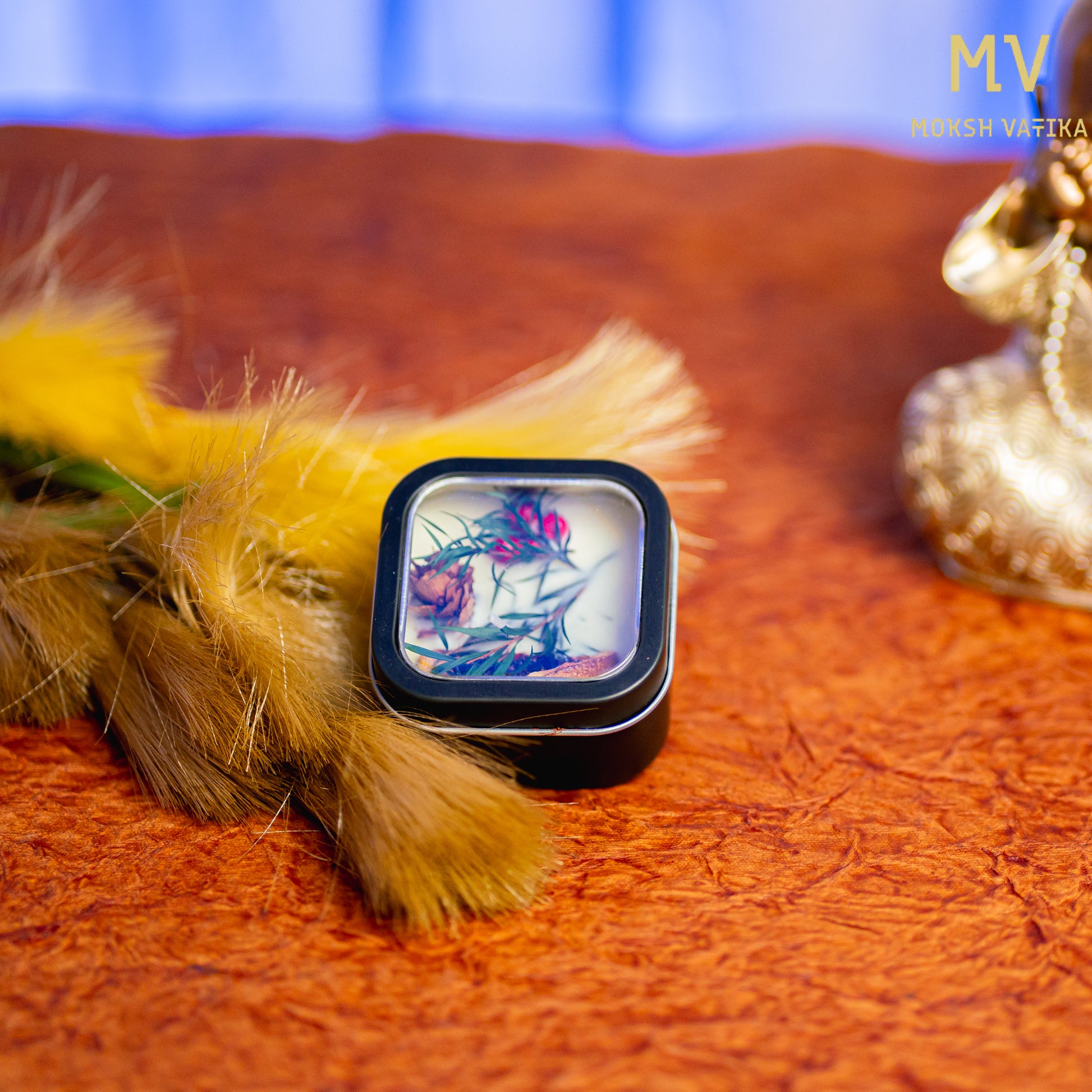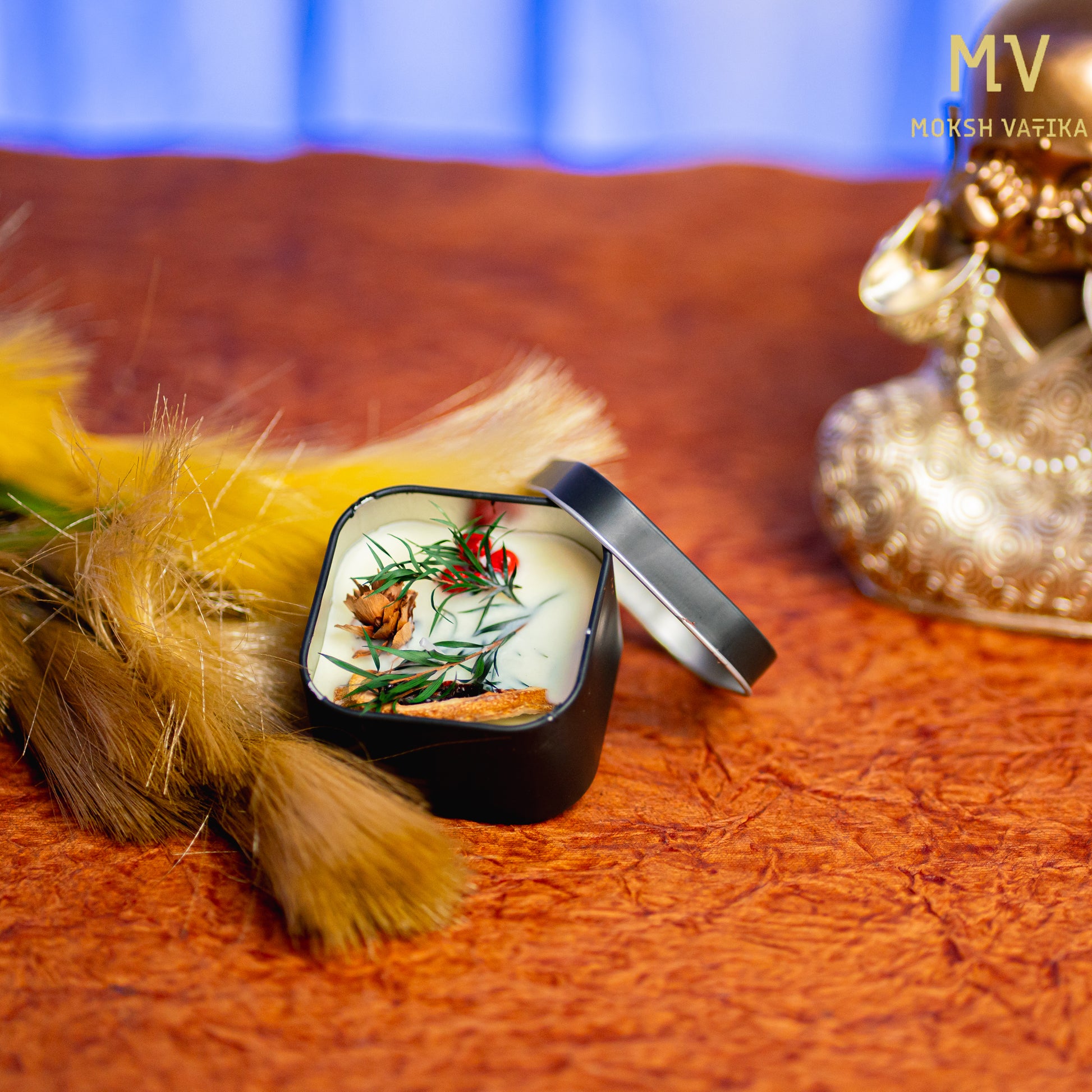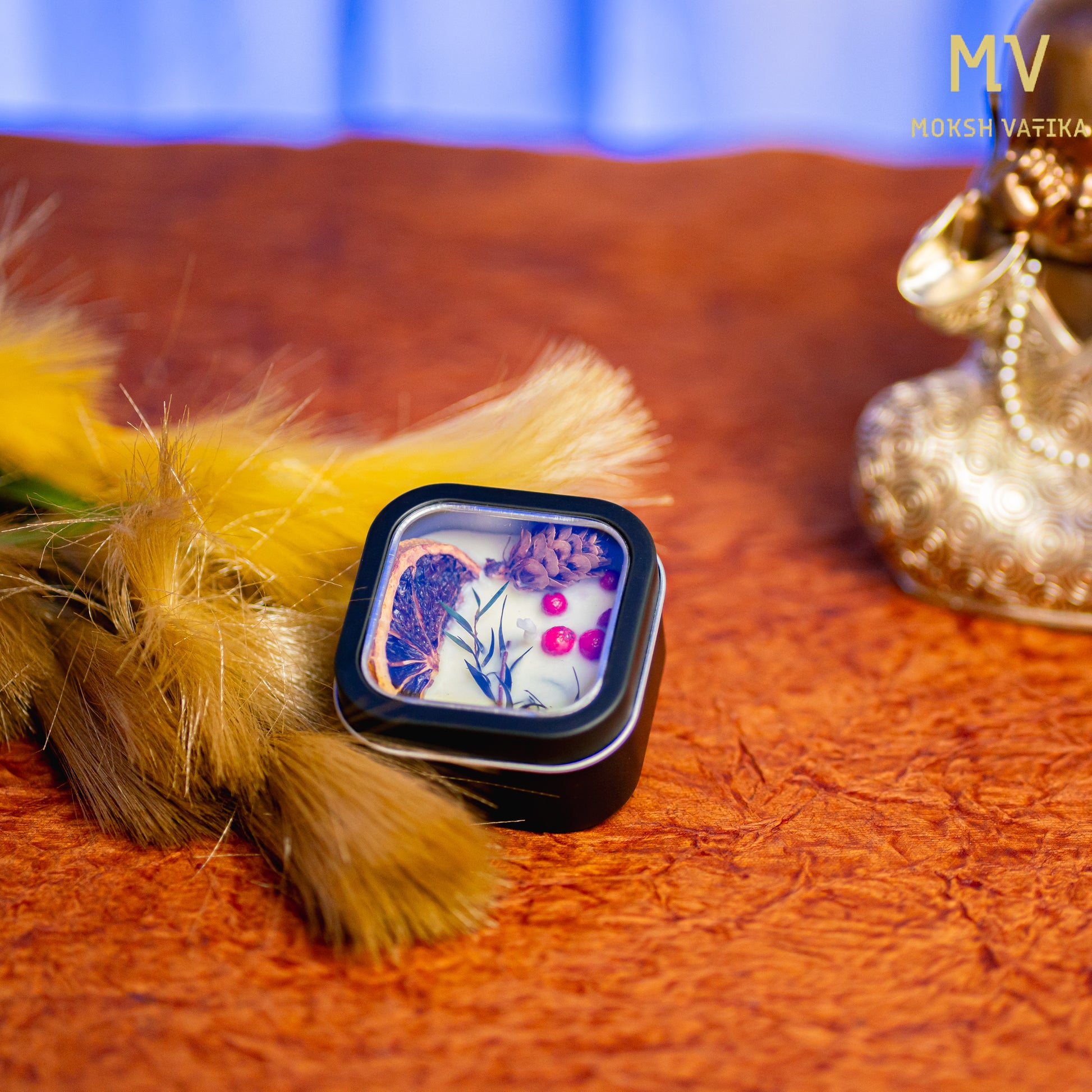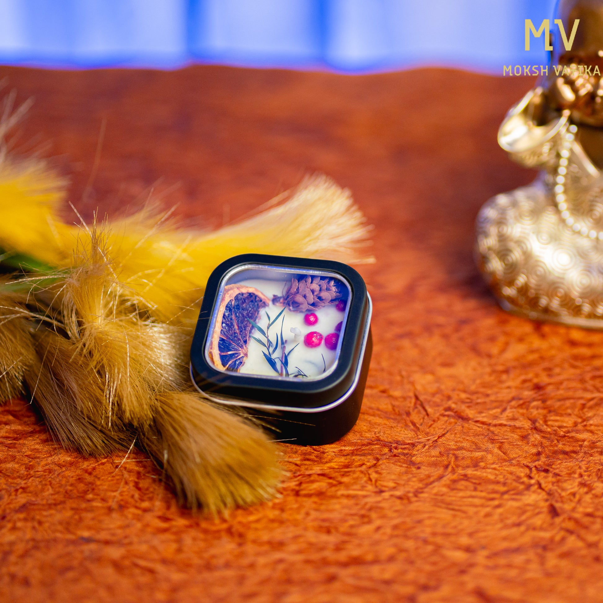 Botanical Soy Wax Candle in Black Square Tin – Moksh Vatika