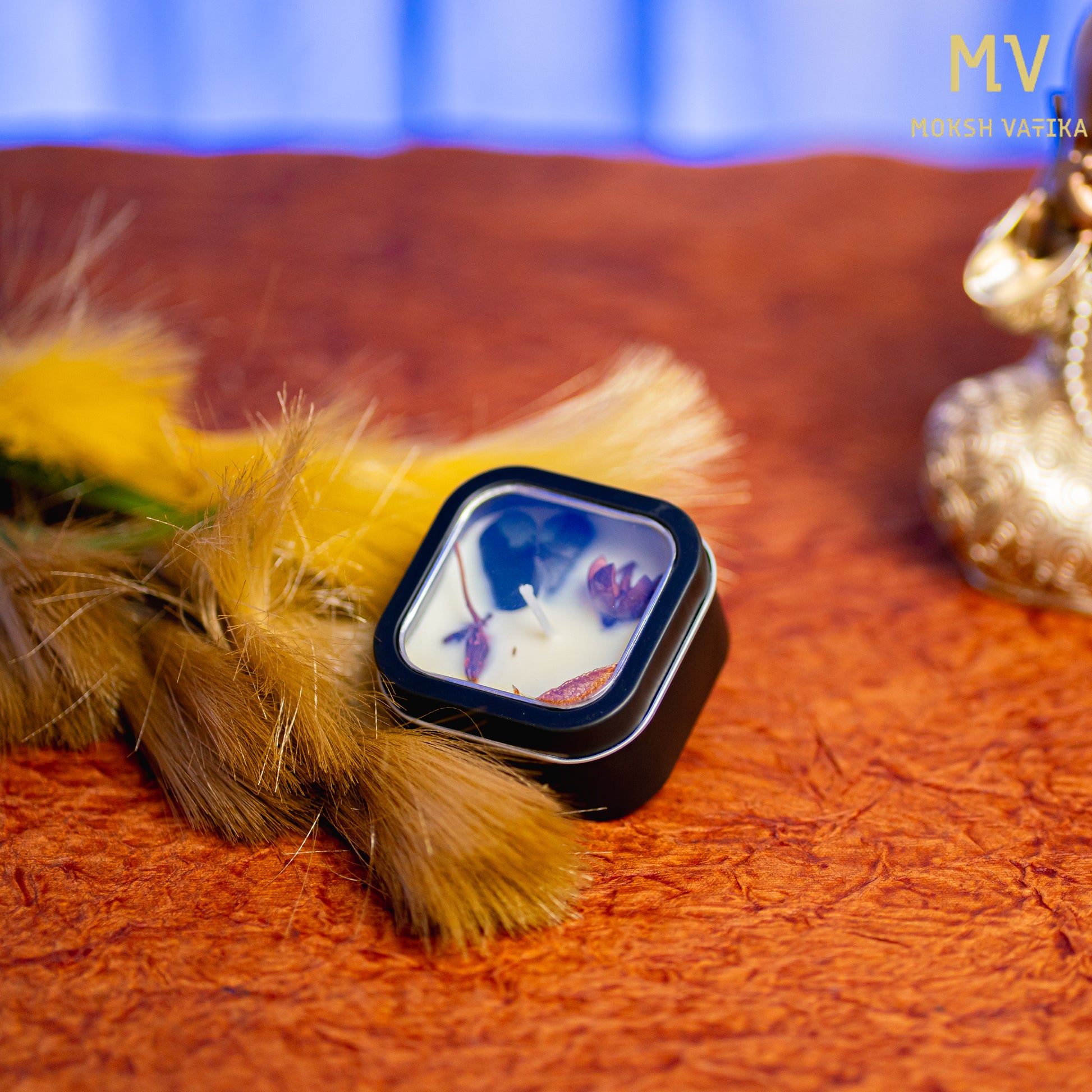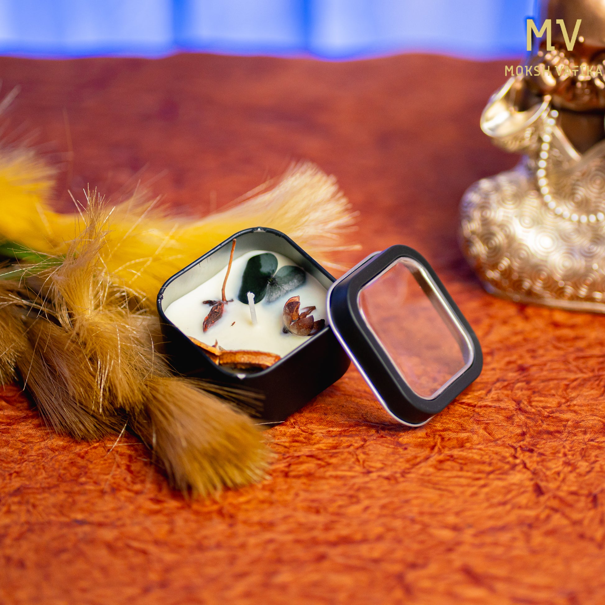 Handcrafted Botanical Soy Wax Candle in Black Square Tin – Moksh Vatika