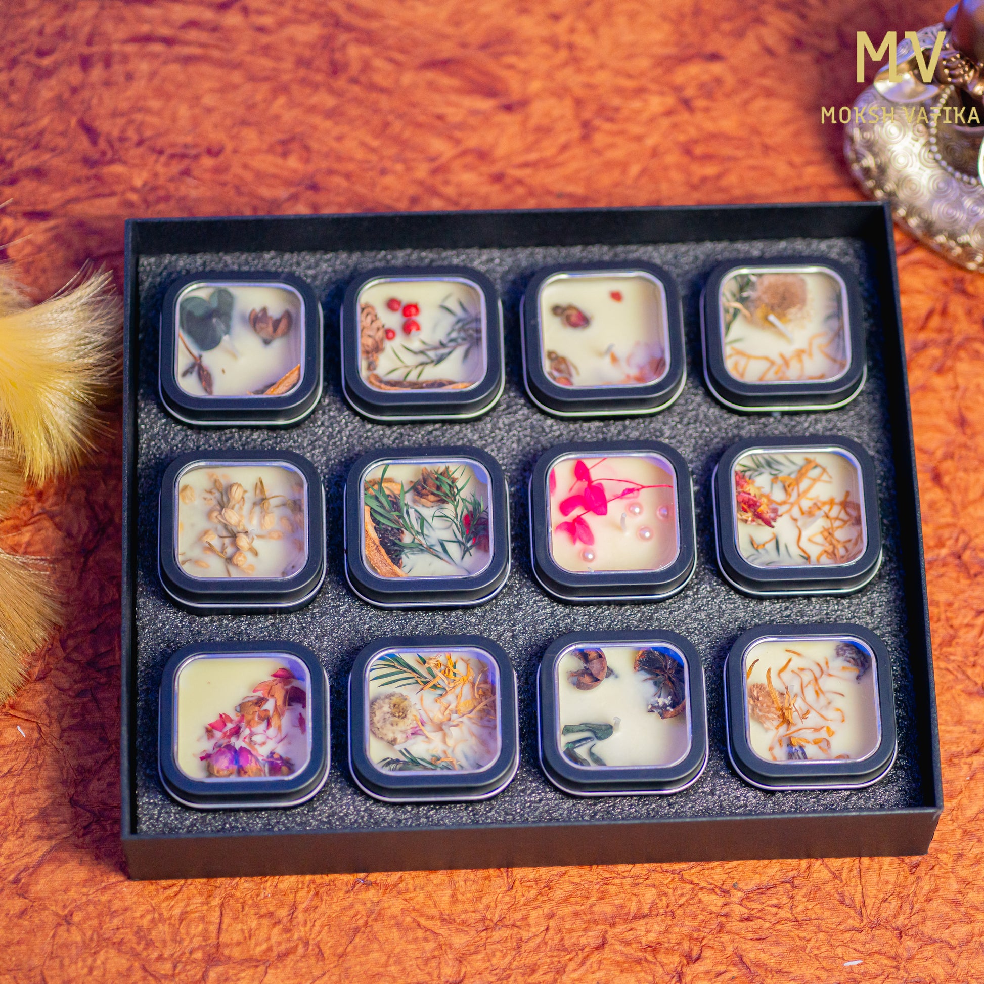 Luxury Gift Box of 12 Botanical Soy Wax Candles – Moksh Vatika