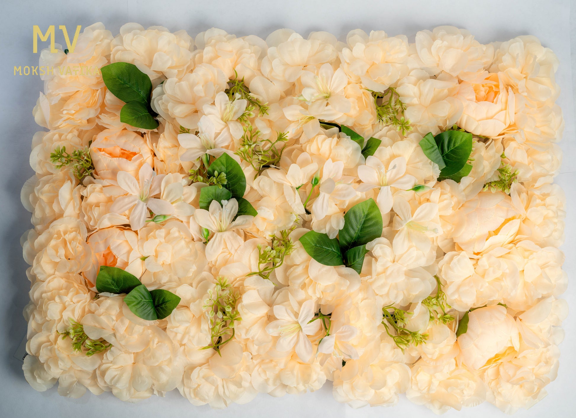 A soft blend of peach-toned silk flowers and lush green leaves, this wall panel adds a premium floral touch to weddings, events, or home decor. Easy to mount, reusable, and made to impress no watering needed.