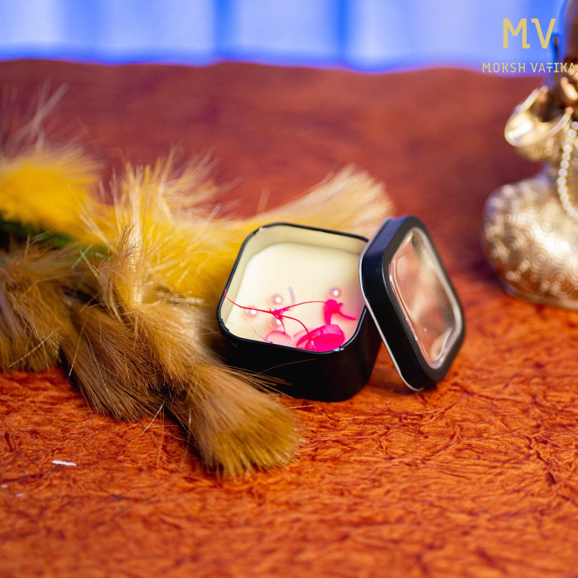 Celebrate elegance and fragrance with Moksh Vatika’s Pink Blossom Botanical Soy Wax Candle. Hand-poured into a sleek black square tin with transparent lid, this artisanal candle is decorated with pink flower petals and pearl-like accents, making it a beautiful statement piece for home décor and gifting.